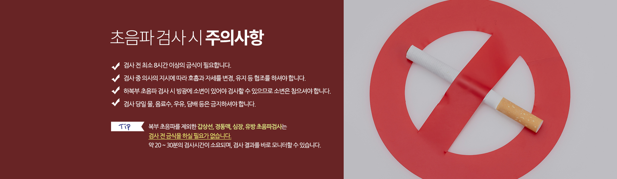 복부 초음파를 제외한 갑상선, 경동맥, 심장, 유방 초음파검사는 검사 전 금식을 하실 필요가 없습니다.